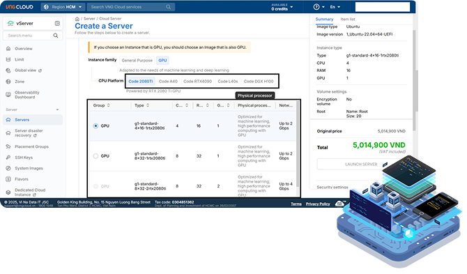 Whether you're launching new digital services, modernizing systems, or deploying AI applications, VNG Cloud delivers industry-grade performance, security, and in-depth technical support.